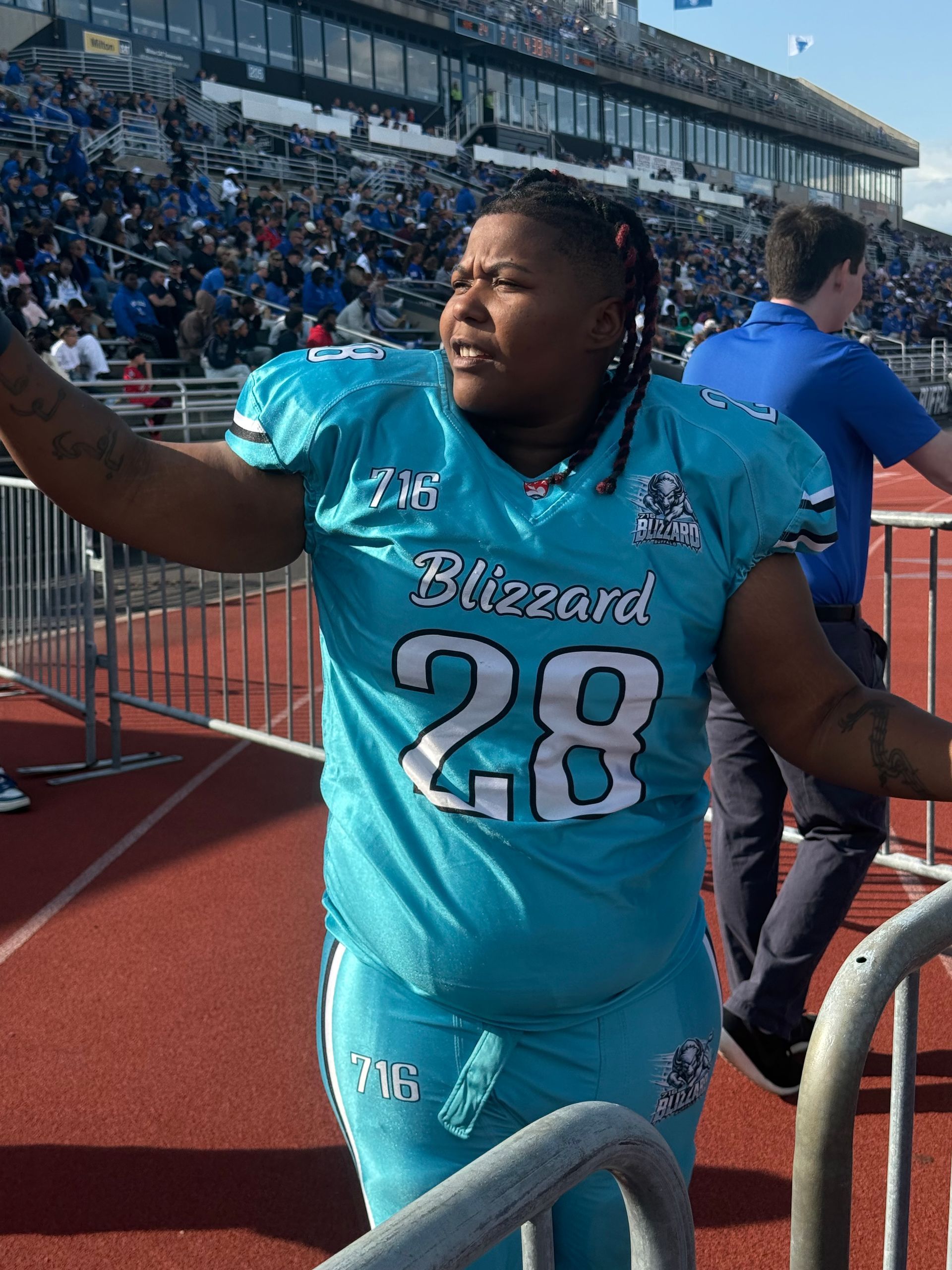 Today, football has my heart. Playing for the 716 Blizzard gives me a sense of camaraderie, joy, and purpose that I wouldn’t trade for anything. I’m an athlete through and through, and one of my biggest goals is to help put female athletes in Buffalo on the map.